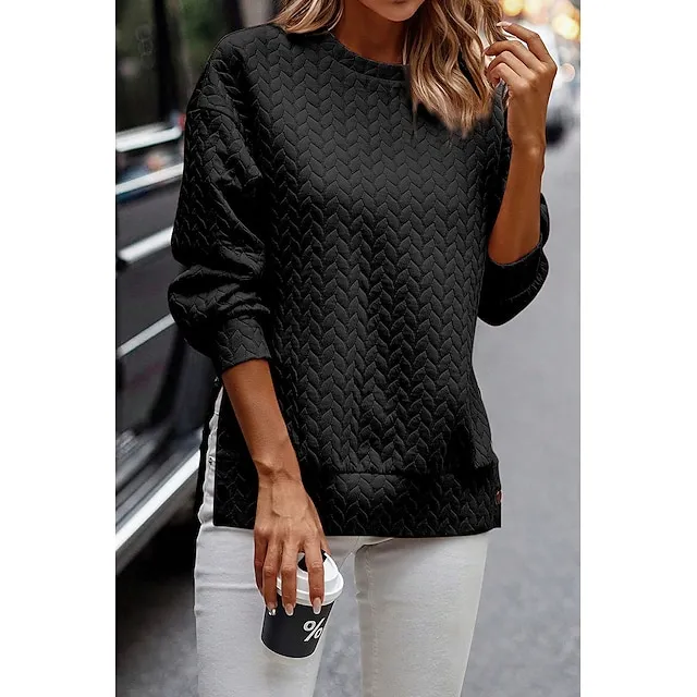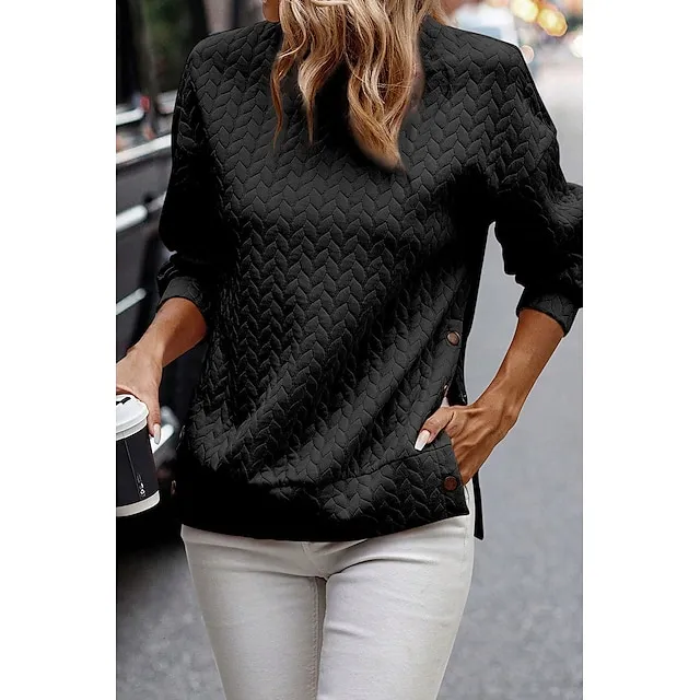 Hoodie Women’s Black Pink Solid Color Button Sports & Outdoor Daily Active Sports Round Neck Textured Regular Fit S