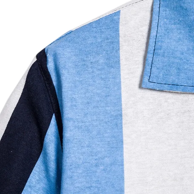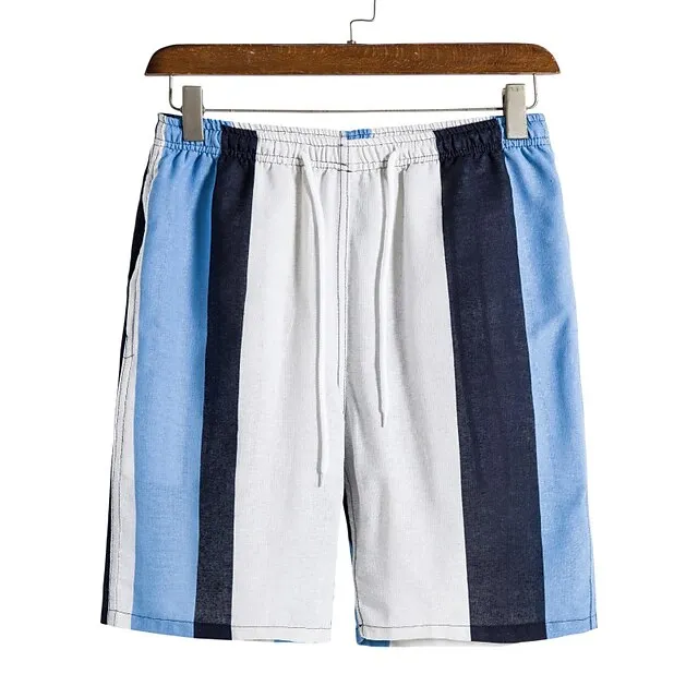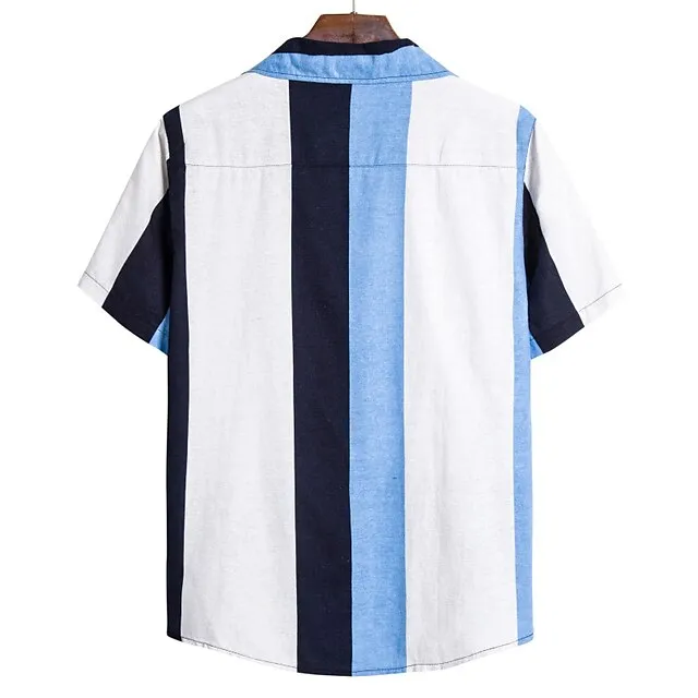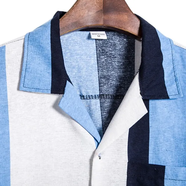 Men’s 2 Piece Shirt Set Summer Shirt Beach Shirt Blue Short Sleeve Striped Lapel Spring & Summer Hawaiian Holiday Clothing Apparel Pocket