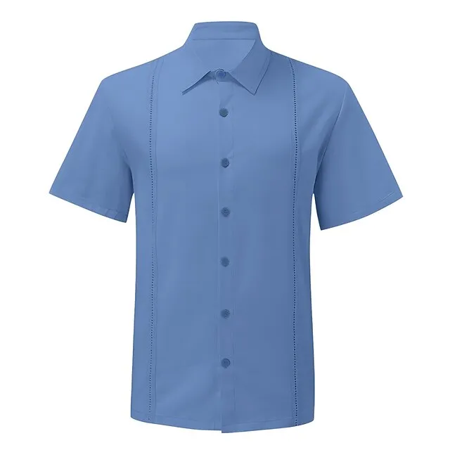 Men’s Guayabera Shirt Linen Shirt Summer Shirt Beach Shirt Black White Blue Short Sleeve Plain Turndown Spring & Summer Street Daily Clothing Apparel Button-Down