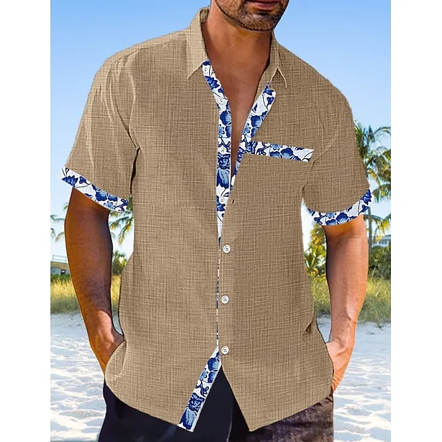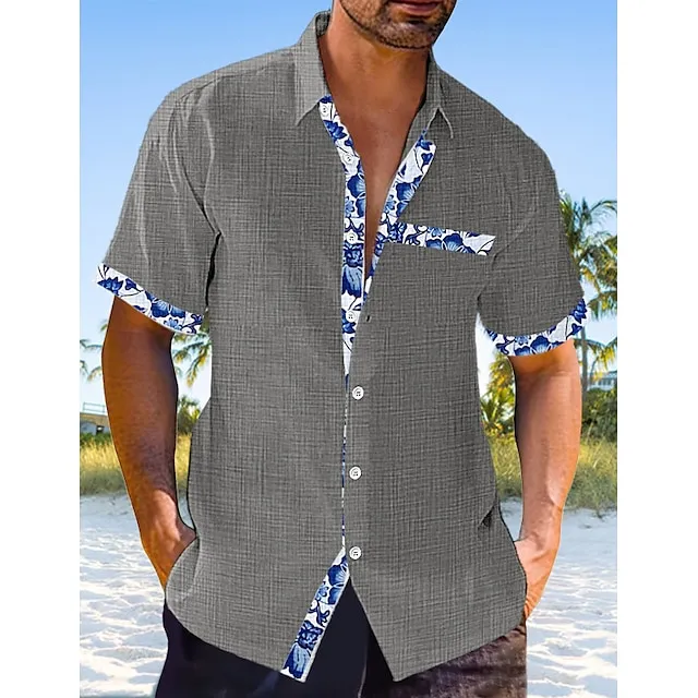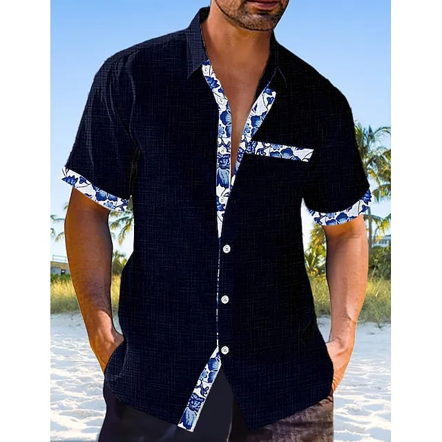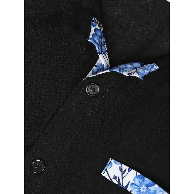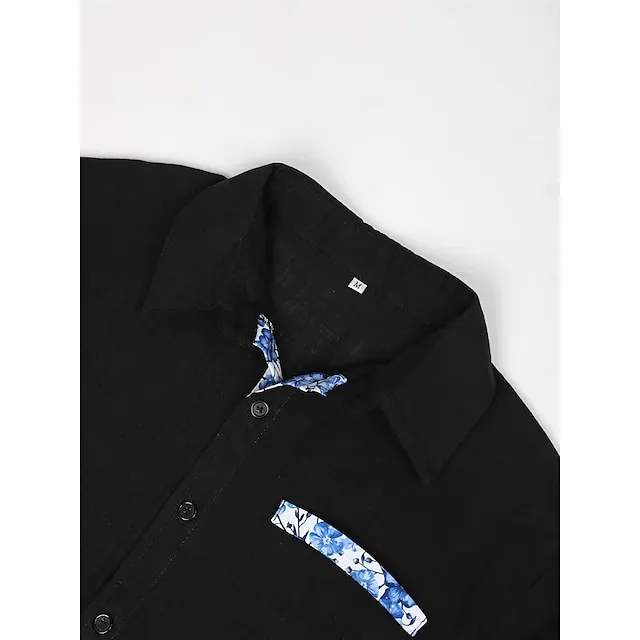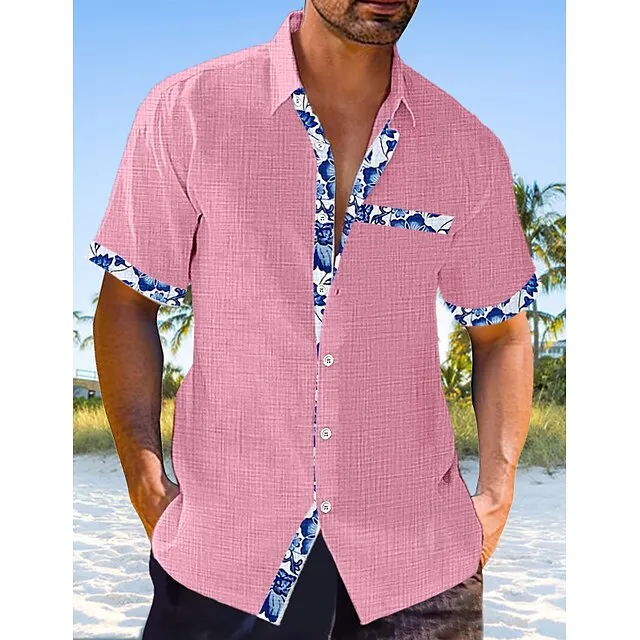 Men’s Linen Shirt Casual Shirt Summer Shirt Beach Shirt Black White Pink Short Sleeve Plain Lapel Spring & Summer Hawaiian Holiday Clothing Apparel Front Pocket
