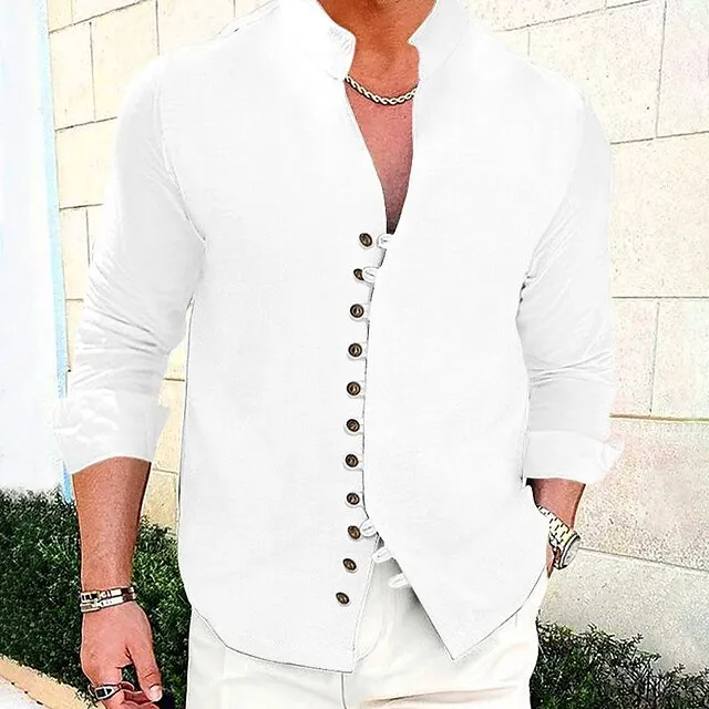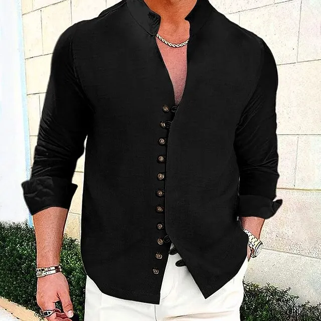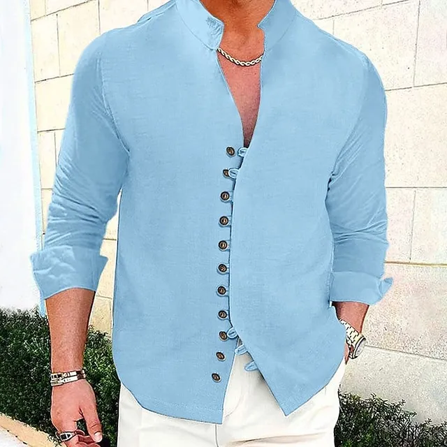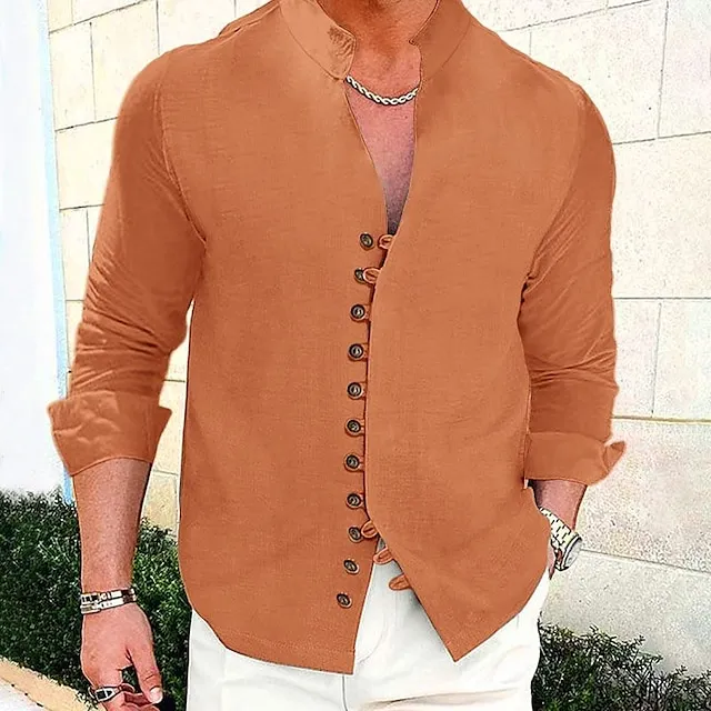 Men’s Linen Shirt Shirt Button Up Shirt Casual Shirt Summer Shirt Beach Shirt Black White Pink Long Sleeve Plain Stand Collar Spring & Summer Casual Daily Clothing Apparel
