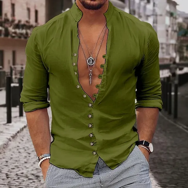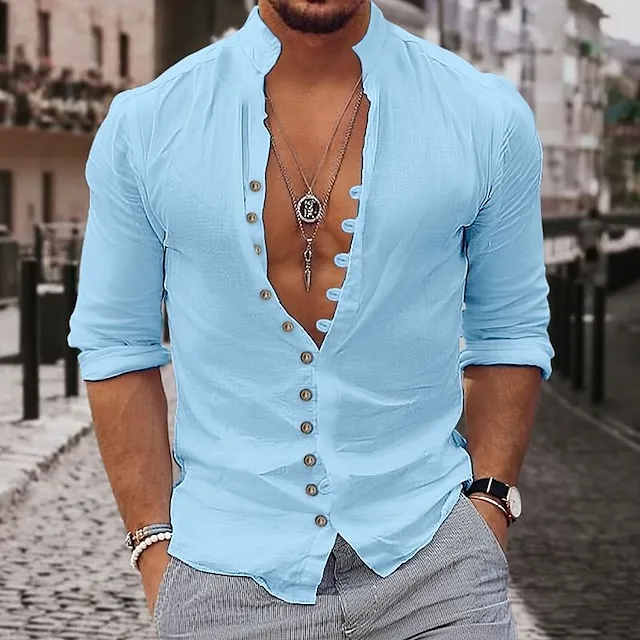 Men’s Linen Shirt Shirt Button Up Shirt Casual Shirt Summer Shirt Beach Shirt Black White Pink Long Sleeve Plain Stand Collar Spring & Summer Casual Daily Clothing Apparel