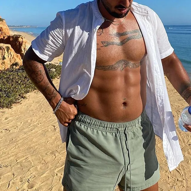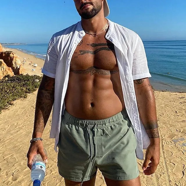 Men’s Linen Shirt Shirt Button Up Shirt Casual Shirt White Short Sleeve Plain Henley Summer Hawaiian Holiday Clothing Apparel Button-Down