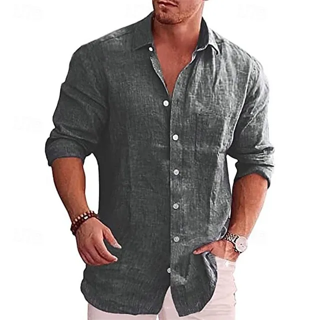 Men’s Linen Shirt Shirt Button Up Shirt Summer Shirt Beach Shirt Black White Wine Long Sleeve Plain Lapel Spring & Fall Hawaiian Holiday Clothing Apparel