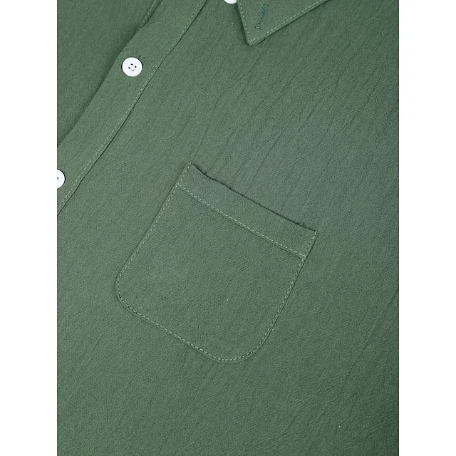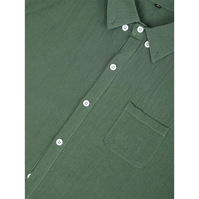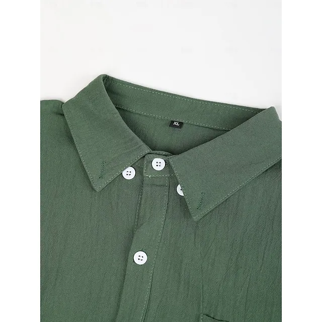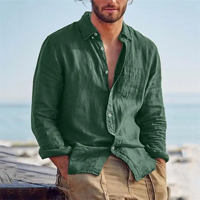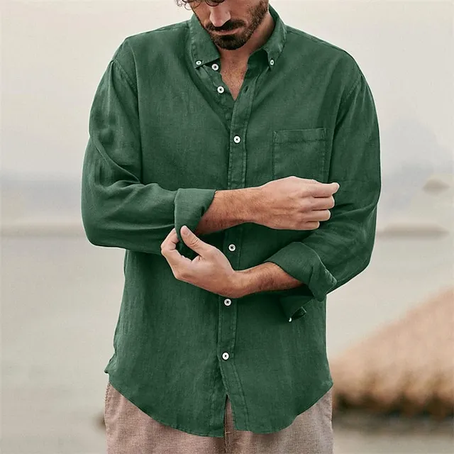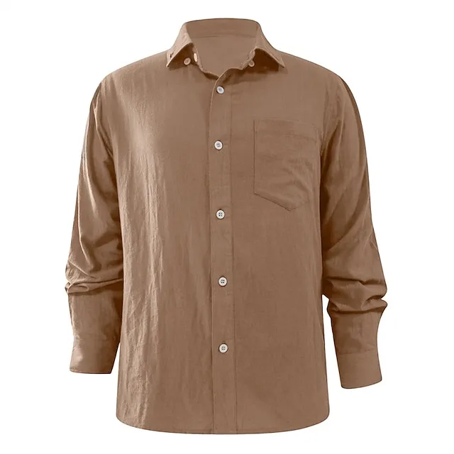 Men’s Linen Shirt Shirt Summer Shirt Beach Shirt Black Brown Green Long Sleeve Solid Color Turndown Spring & Fall Outdoor Street Clothing Apparel Button-Down