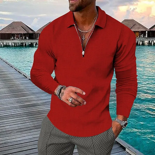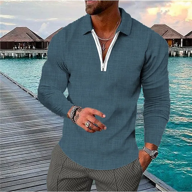 Men’s Polo Shirt Golf Shirt Outdoor Street Turndown Long Sleeve Fashion Designer Plaid Zipper Print Spring & Fall Regular Fit Black Army Green Red Royal Blue Blue Green Polo Shirt
