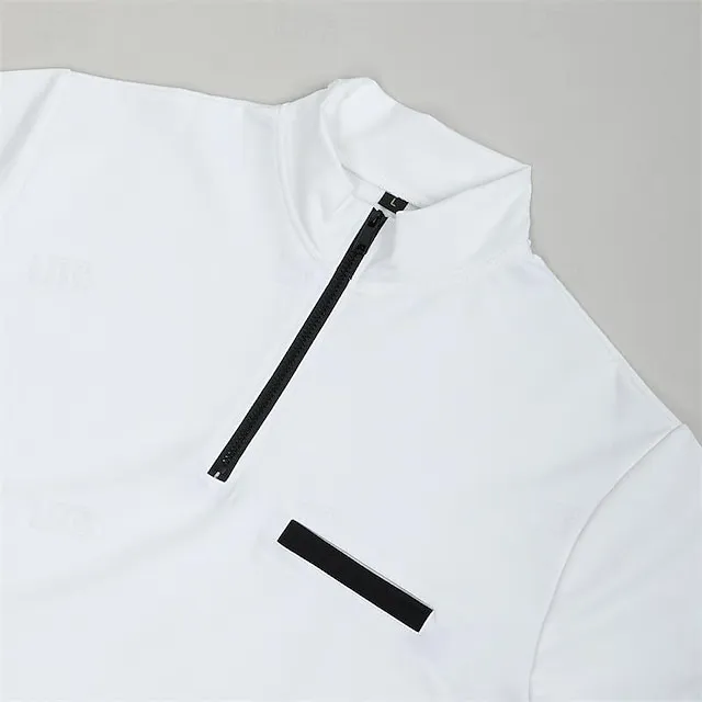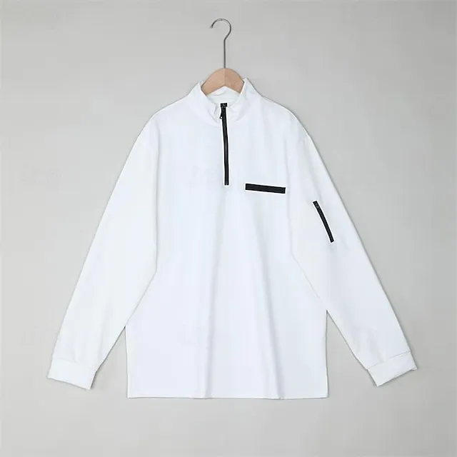 Men’s Polo Shirt Pullover Sports Daily Wear Quarter Zip Long Sleeve Fashion Comfortable Plain Pocket Zip Up Spring & Fall Regular Fit Black White Navy Blue Orange Polo Shirt