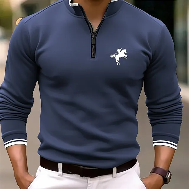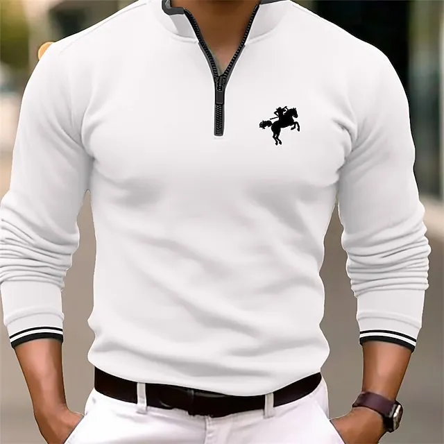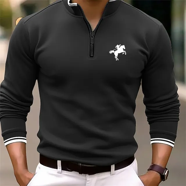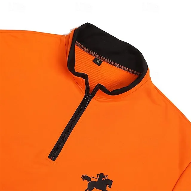 Men’s Polo Shirt Quarter Zip Polo Work Daily Wear Quarter Zip Long Sleeve Fashion Comfortable Plain Embroidery Zip Up Spring & Fall Regular Fit Black White Navy Blue Orange Polo Shirt