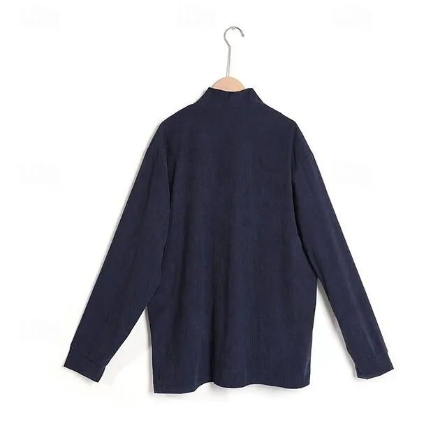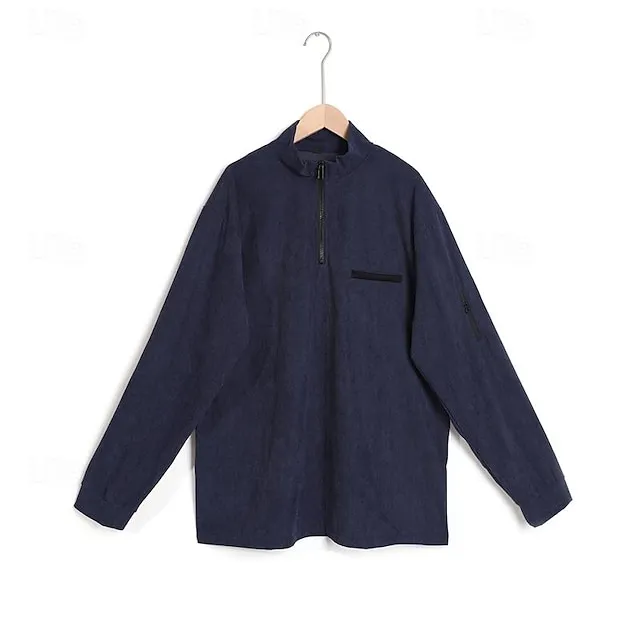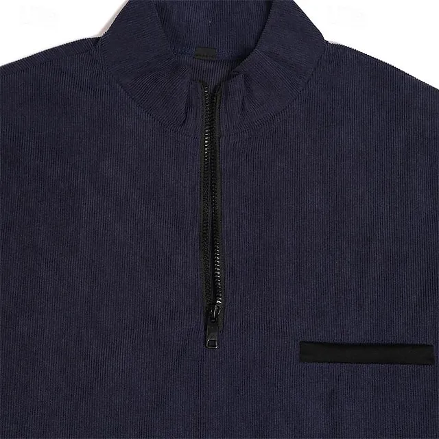 Men’s Polo Shirt Zip Polo Casual Holiday Lapel Quarter Zip Long Sleeve Fashion Basic Plain Quarter Zip Summer Spring Regular Fit Dark Navy Brown Green Gray Polo Shirt