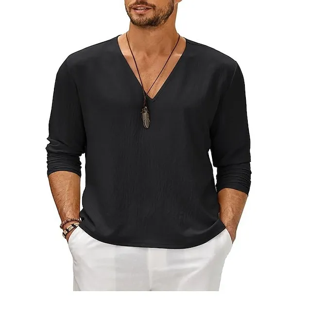 Men’s Shirt Linen Shirt Summer Shirt Beach Shirt White Blue Brown Long Sleeve Plain Crew Neck Spring & Summer Casual Daily Clothing Apparel
