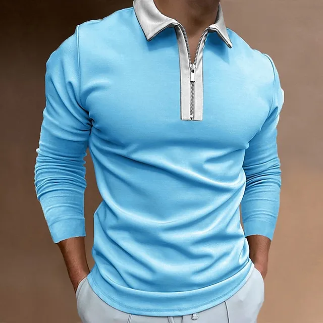 Men’s Zip Polo Polo Shirt Outdoor Street Collar Quarter Zip Long Sleeve Fashion Sportswear Solid Color Zipper Quarter Zip Fall Winter Regular Fit Black Blue Khaki Zip Polo