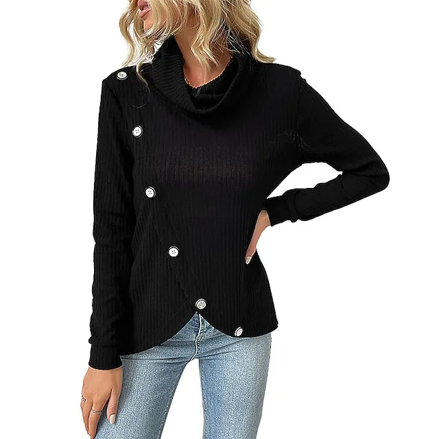Shirt Blouse Women’s Black Solid Color Button Crochet Street Daily Fashion Daily Regular Fit S