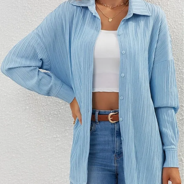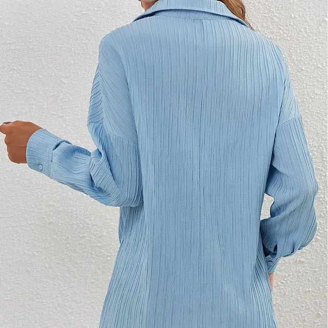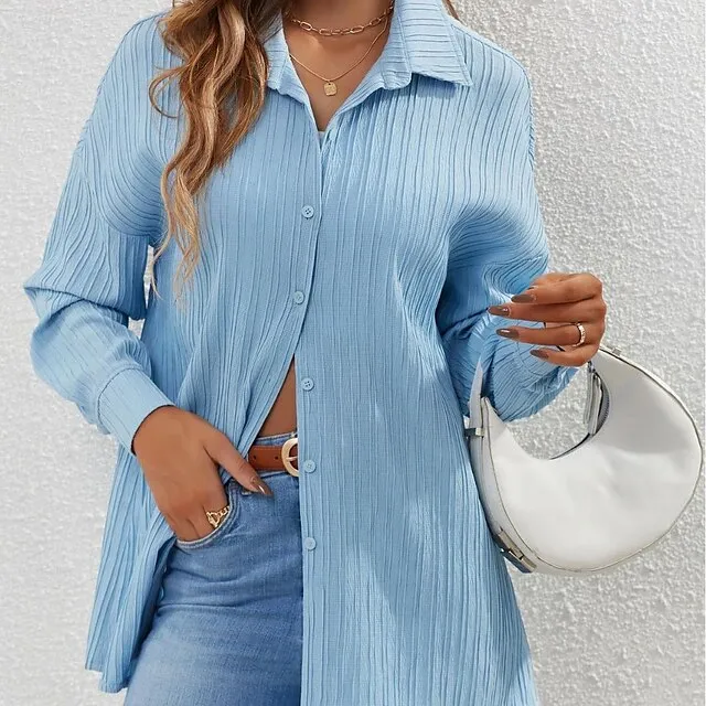 Shirt Blouse Women’s Blue Solid Color Button Street Daily Fashion Shirt Collar S