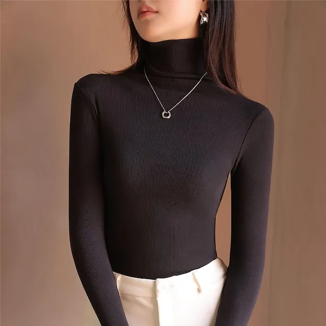 Shirt Women’s Black White Blue Solid / Plain Color Sexy Daily Fashion High Neck Regular Fit M
