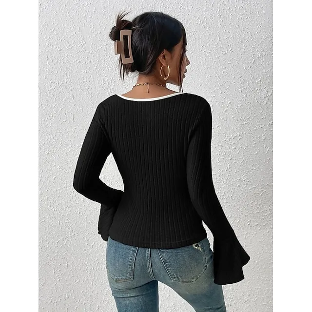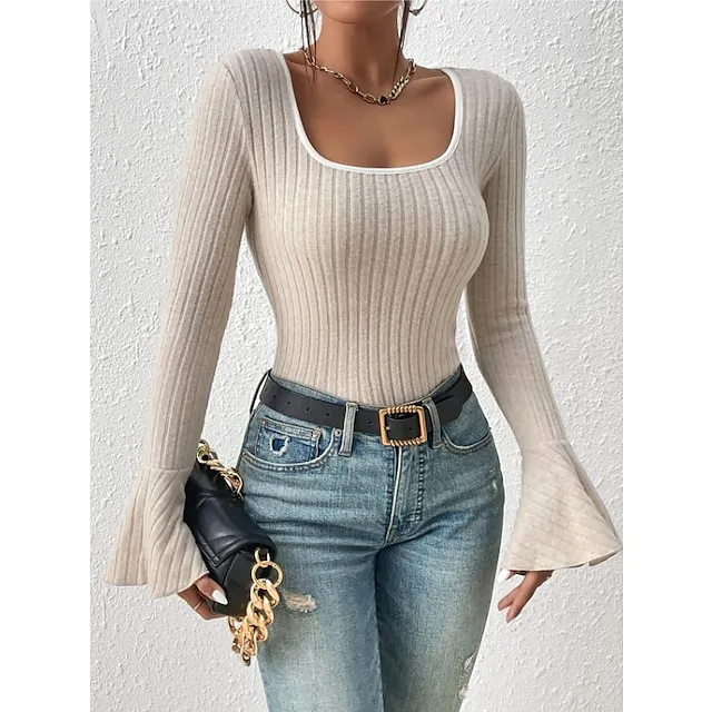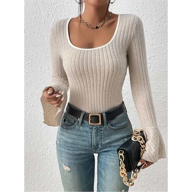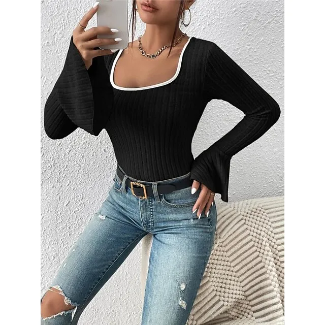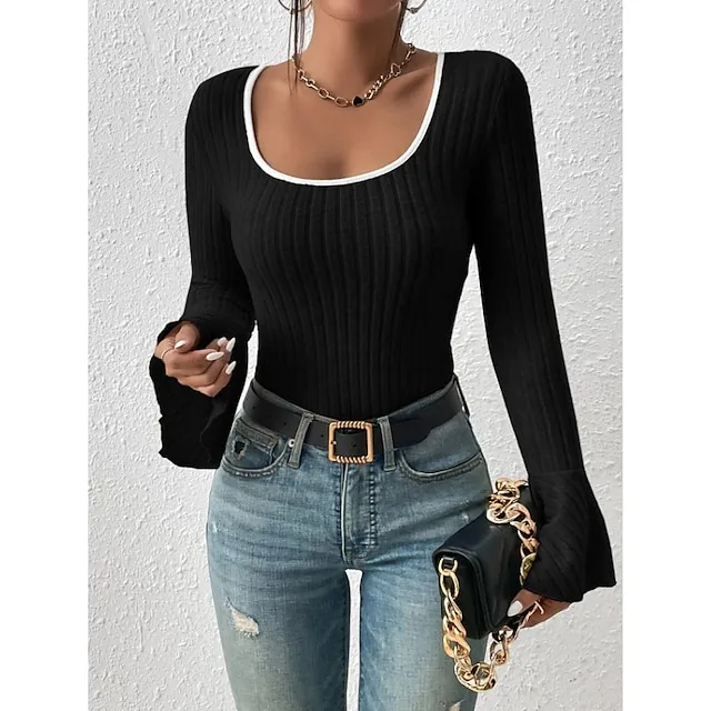 T shirt Tee Women’s Black Beige Plain Daily Fashion U Neck Slim S