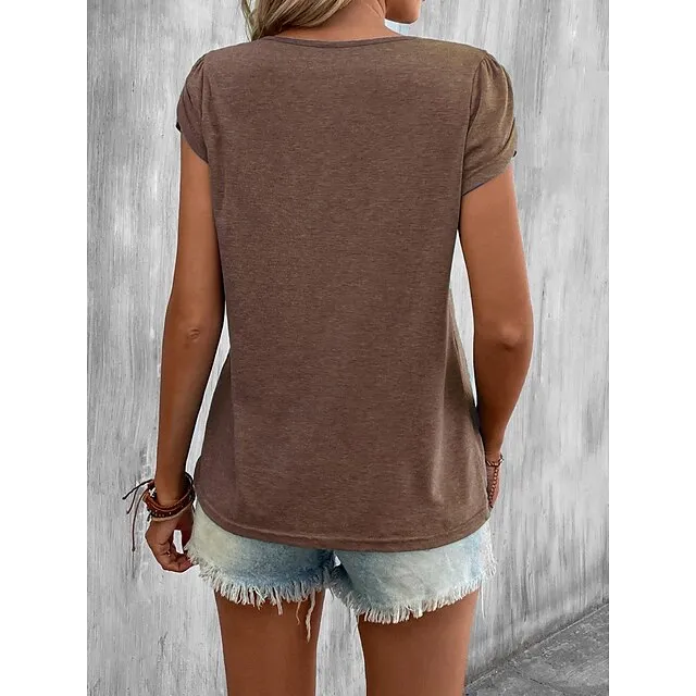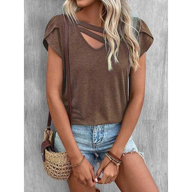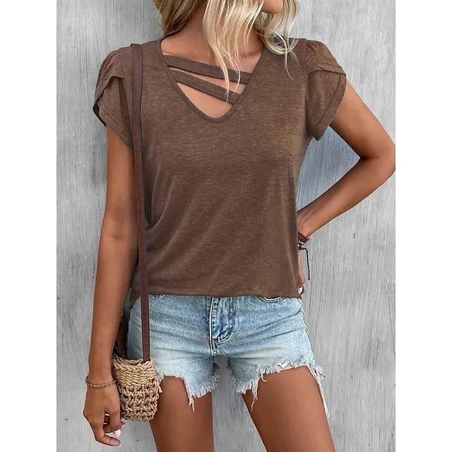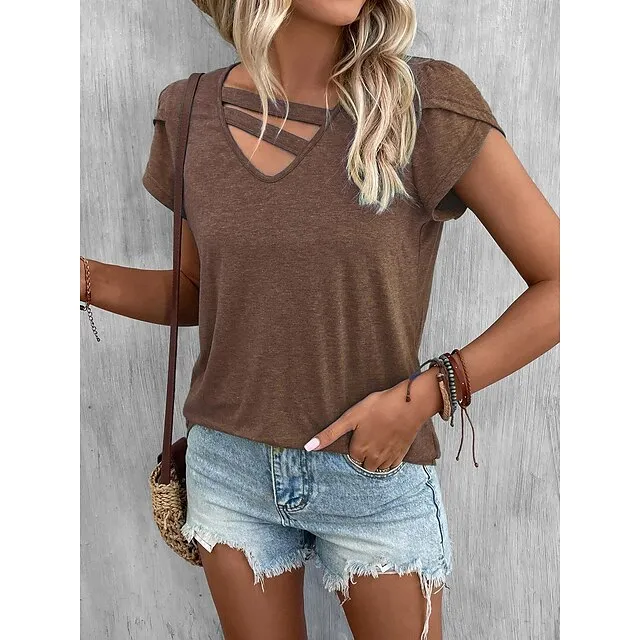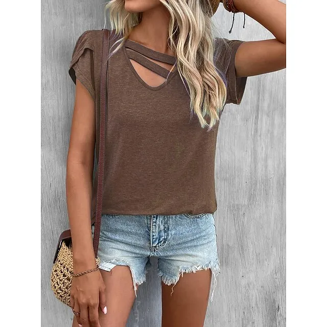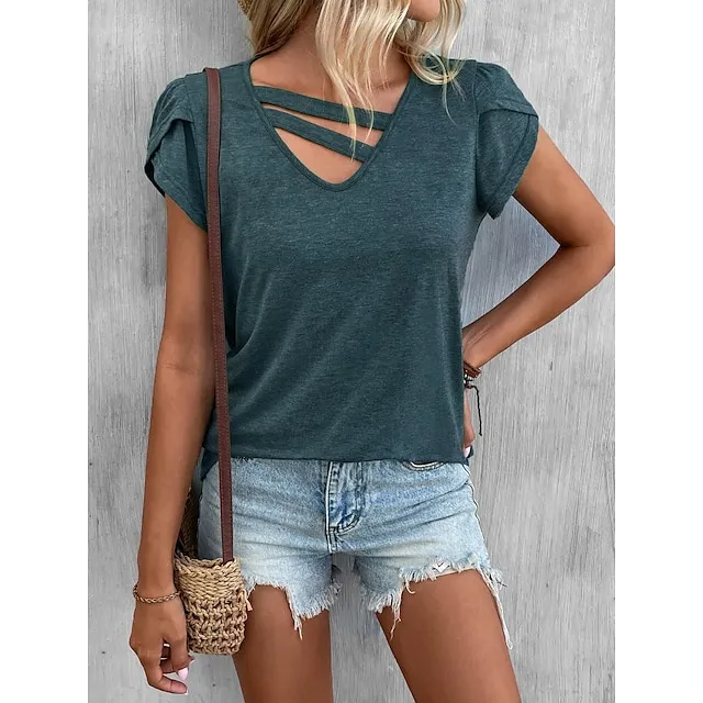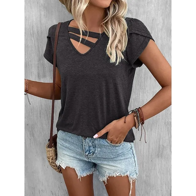 T shirt Tee Women’s Black Navy Blue Blue Plain Sexy Street Daily Fashion V Neck Regular Fit S