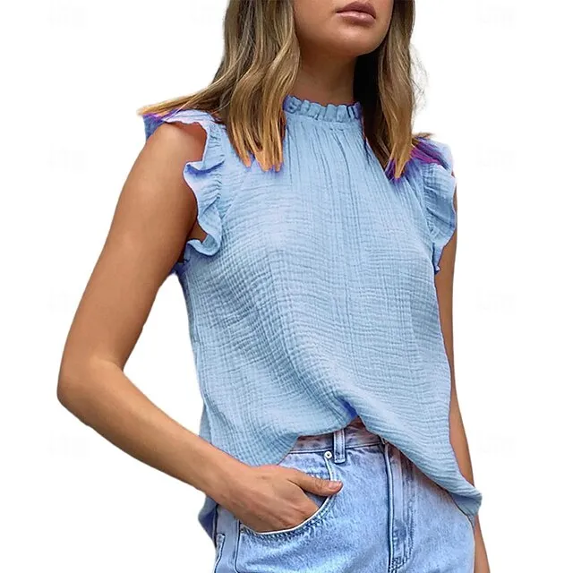 – It features elegant and feminine ruffles that add a touch of sophistication to any outfit.