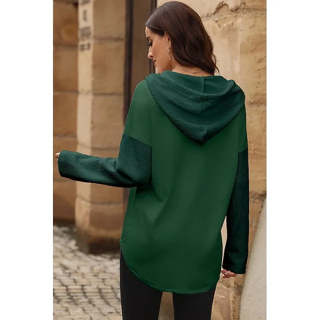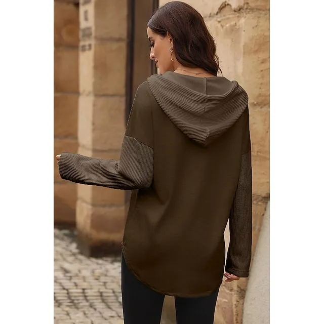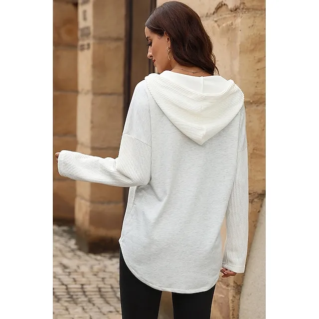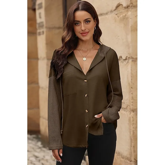 Women’s Black White Yellow Plain Button Pocket Drawstring Street Casual Active Fashion Hooded Regular Fit S