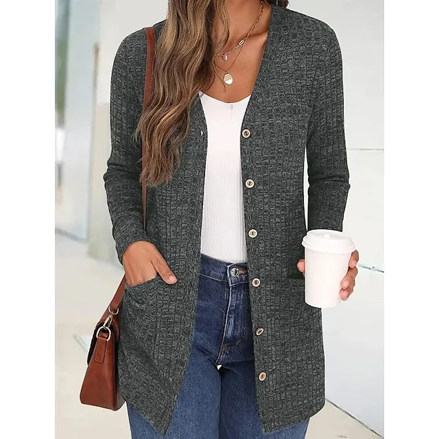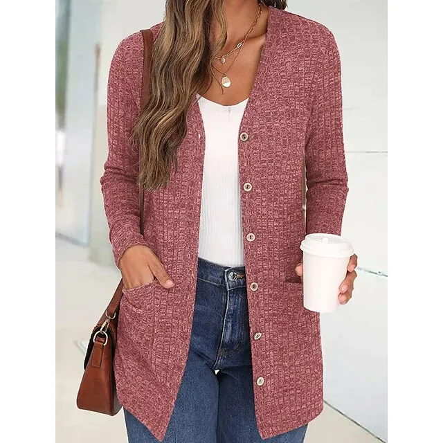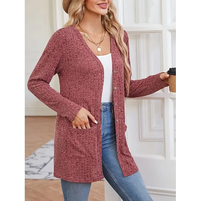 Women’s Blouse Shrugs Plain Casual Black Red Button Pocket Long Sleeve Fashion V Neck Regular Fit Spring & Fall