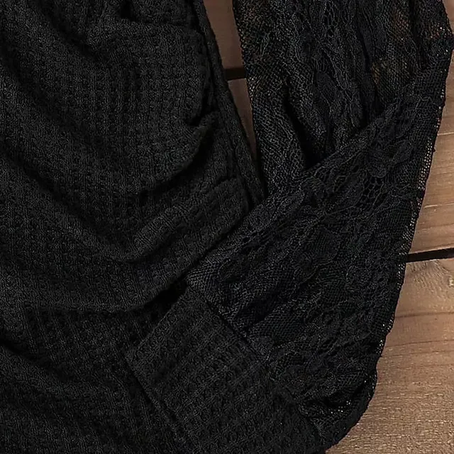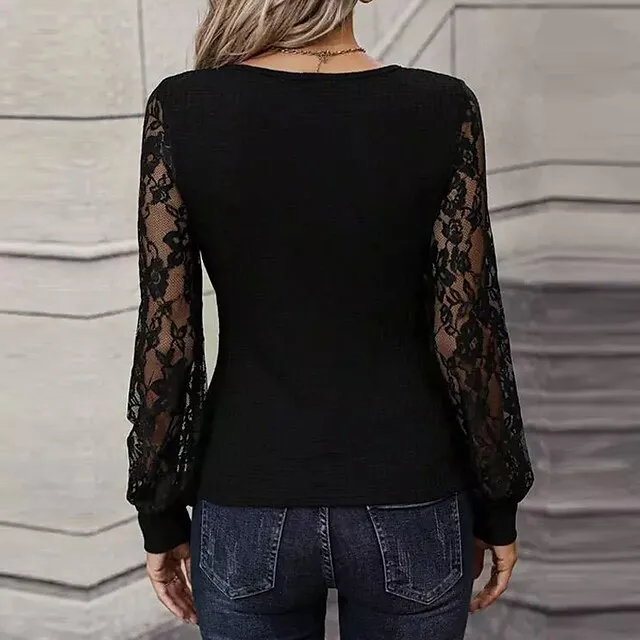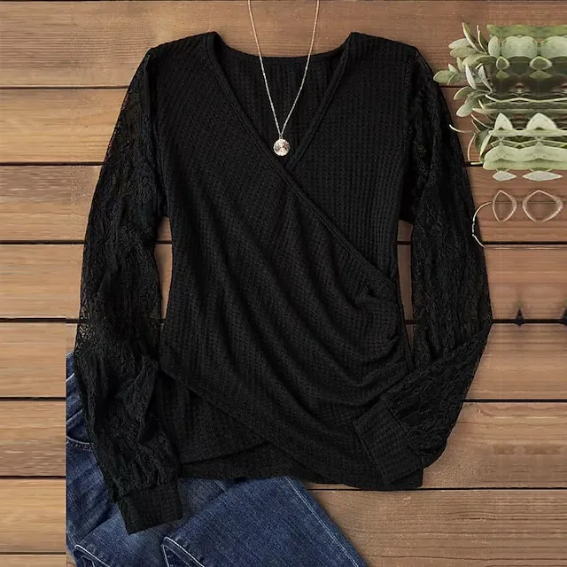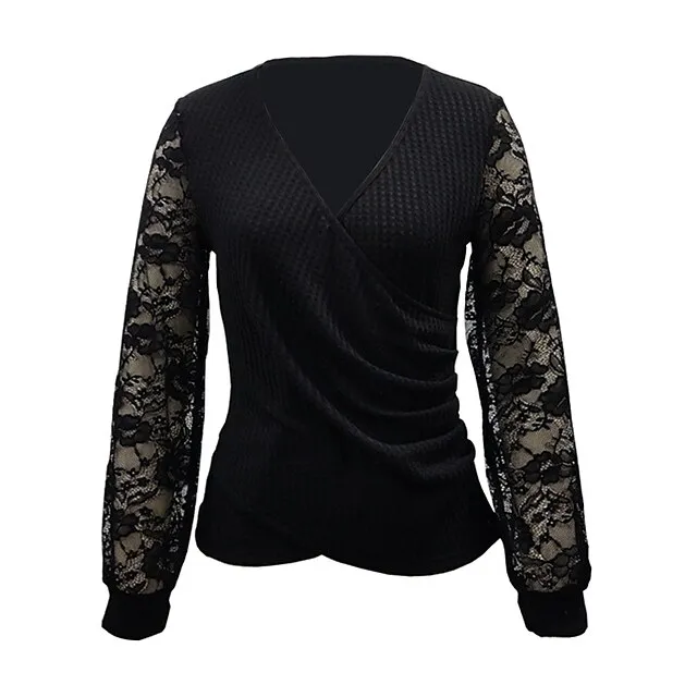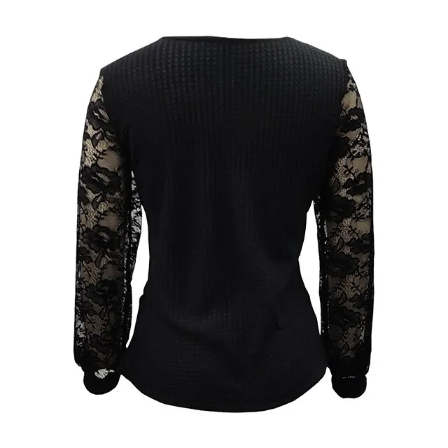 Women’s Lace Shirt Shirt Blouse Plain Casual Black Lace Long Sleeve Fashion V Neck Regular Fit Spring & Fall