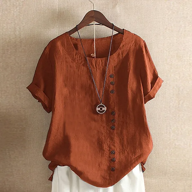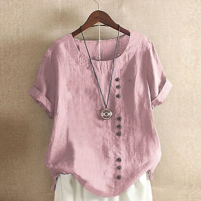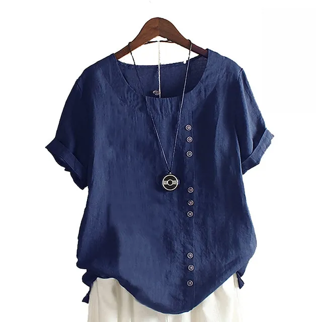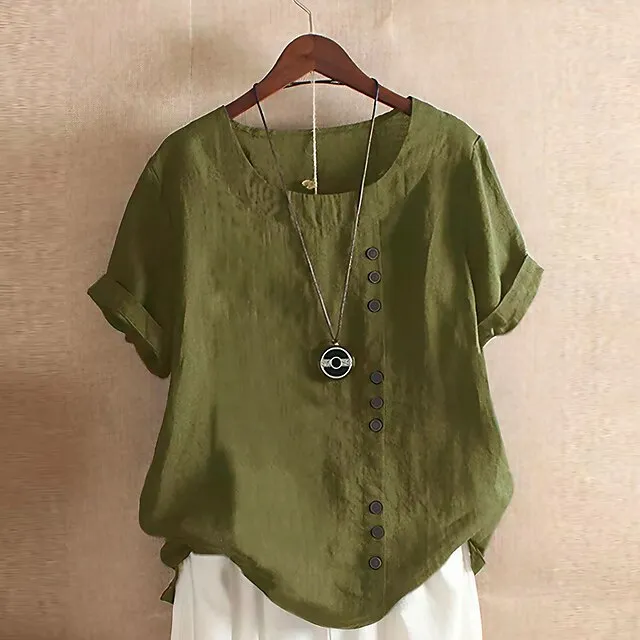 Women’s Linen Shirt T shirt Tee Blouse Cotton Plain Daily Sports Going out White Pink Navy Blue Print Short Sleeve Streetwear Basic St. Patrick’s Day Crew Neck Regular Fit Summer Spring