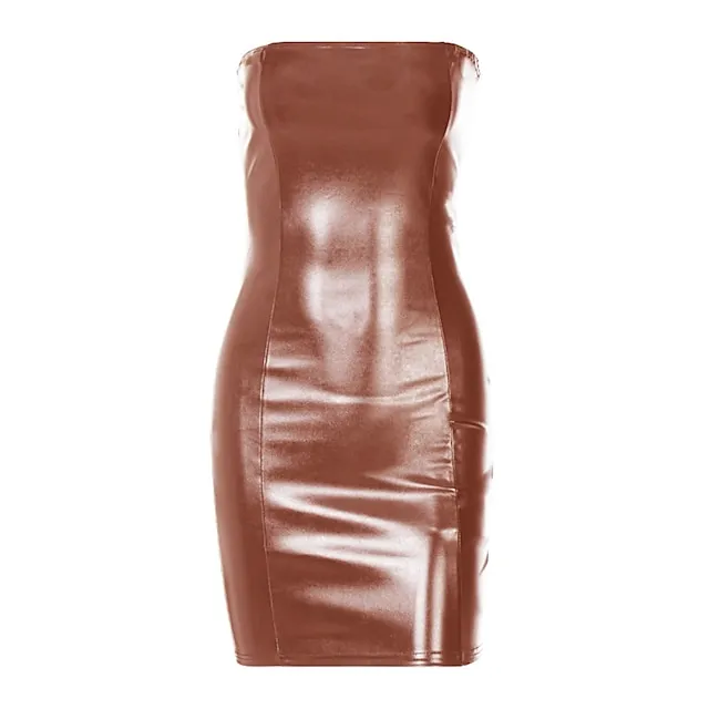 Women’s Little Black Dress Sexy Dress Party Dress Wedding Guest Dress Mini Dress Orange Brown Sleeveless Backless Fall Strapless Fashion Wedding Guest Fall Dress