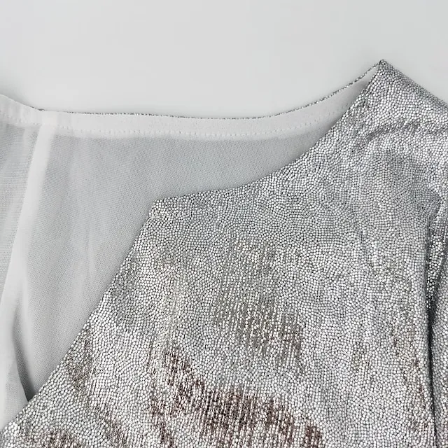 Women’s Party Dress Cocktail Dress Wedding Guest Dress Mini Dress Silver Long Sleeve Pure Color Patchwork Spring Fall Winter One Shoulder Fashion Winter Dress Office Vacation S M L XL XXL 3XL