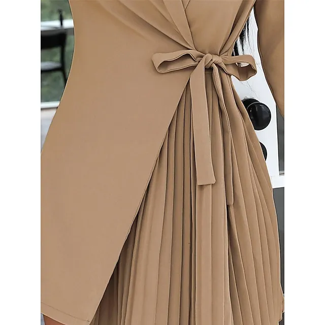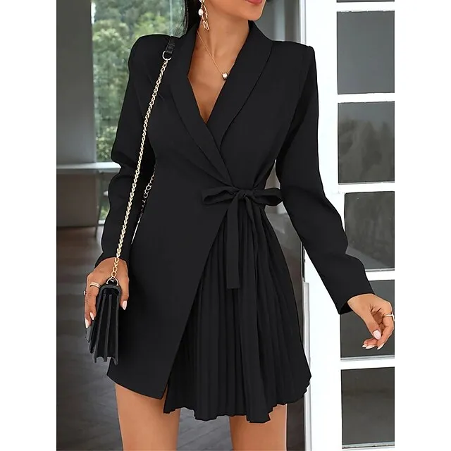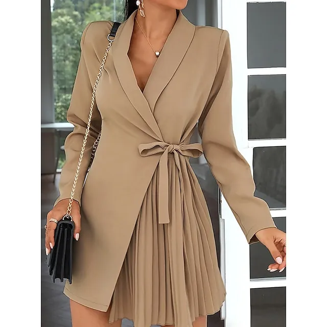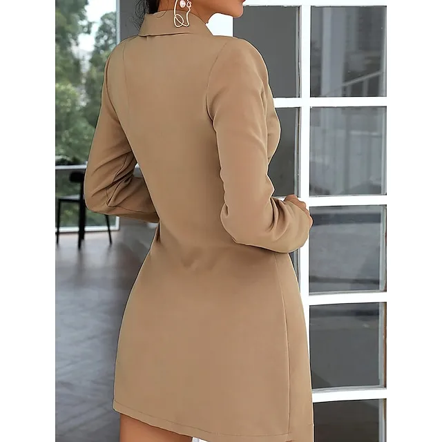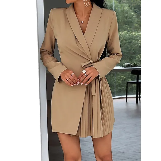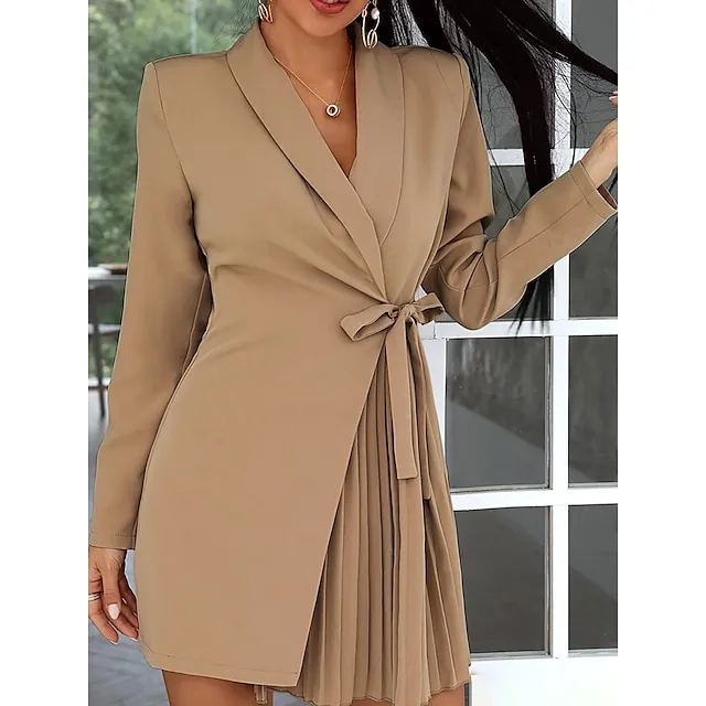 Women’s Party Dress Cocktail Dress Work Dress Mini Dress Black Khaki Long Sleeve Pure Color Lace up Spring Fall Winter Shirt Collar Fashion Winter Dress Office Wedding Guest S M L XL XXL 3XL