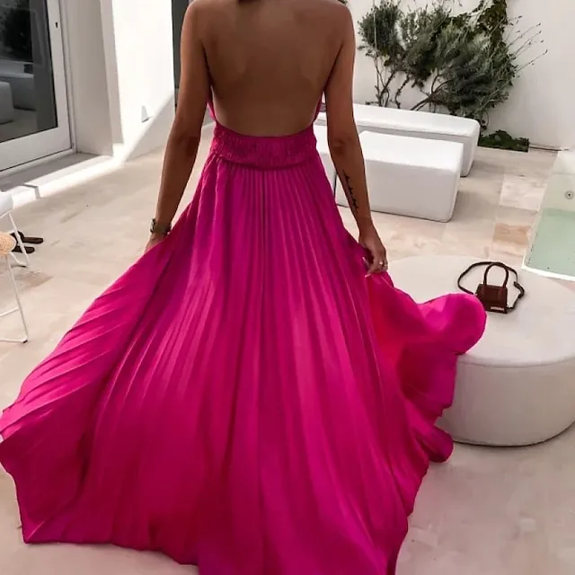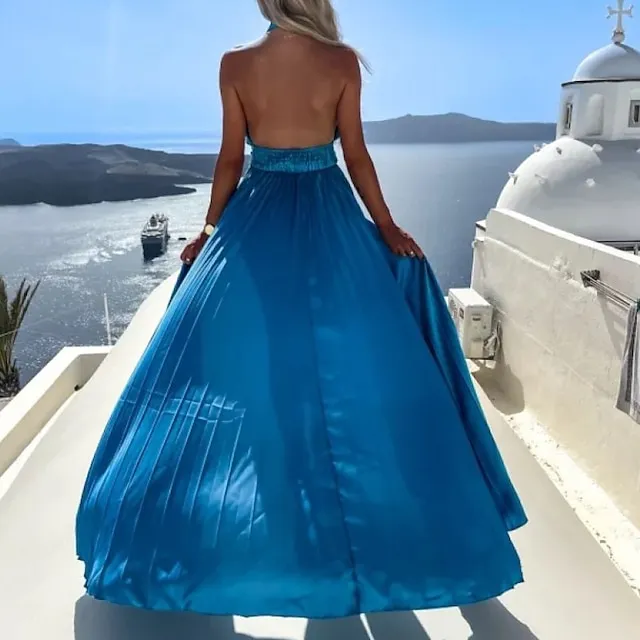 Women‘s Prom Party Dress Long Dress Maxi Dress Black Blue Fuchsia Sleeveless Pure Color Split Spring Summer Halter Party Party Slim S M L XL XXL