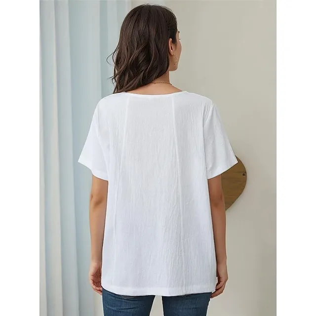 Women’s Shirt Blouse 100% Cotton Letter St.Patrick’s Day Holiday White Button Print Short Sleeve Fashion Basic Crew Neck Regular Fit Summer