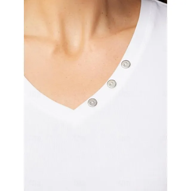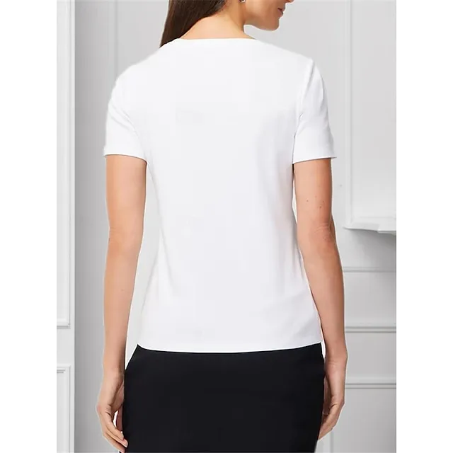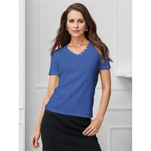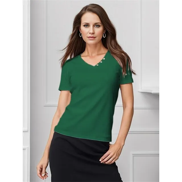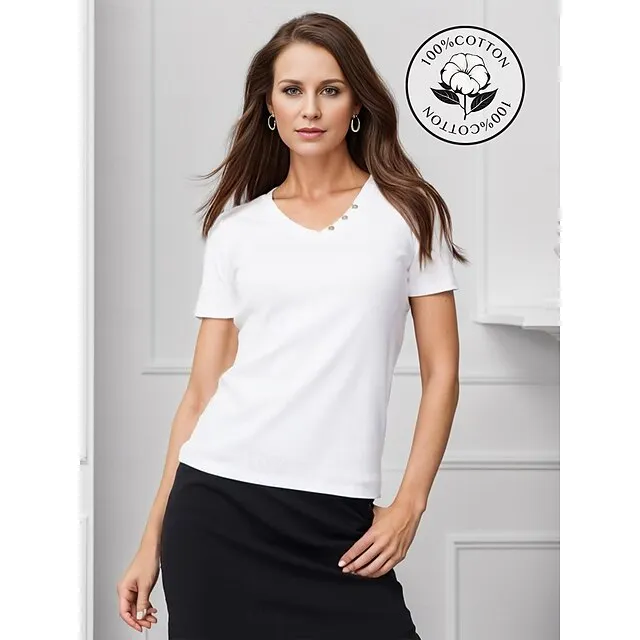 Women’s Shirt Blouse 100% Cotton Plain Casual White Blue Green Button Short Sleeve Basic Classic V Neck Regular Fit Summer