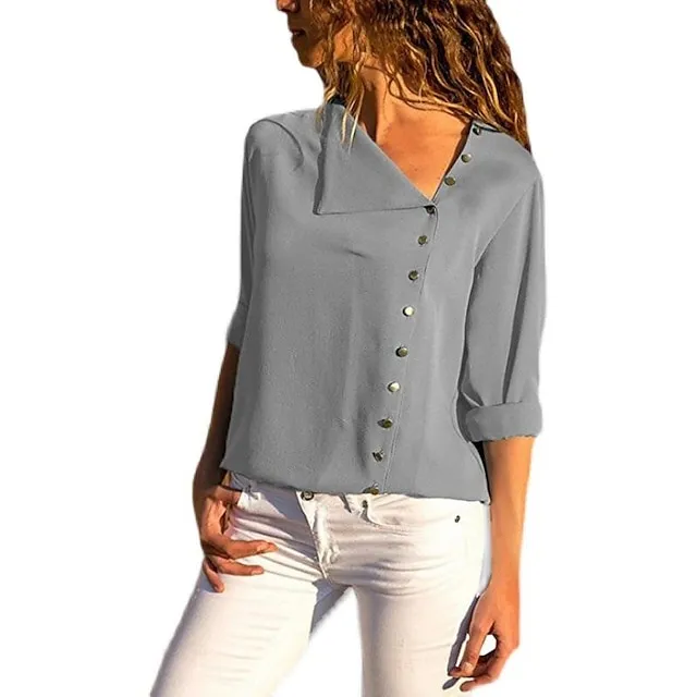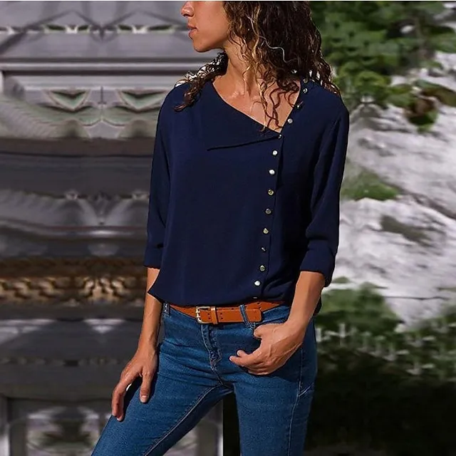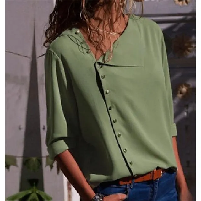 Women’s Shirt Blouse Black White Yellow Plain Button Long Sleeve Casual Daily Basic Business Elegant V Neck Regular Cotton S