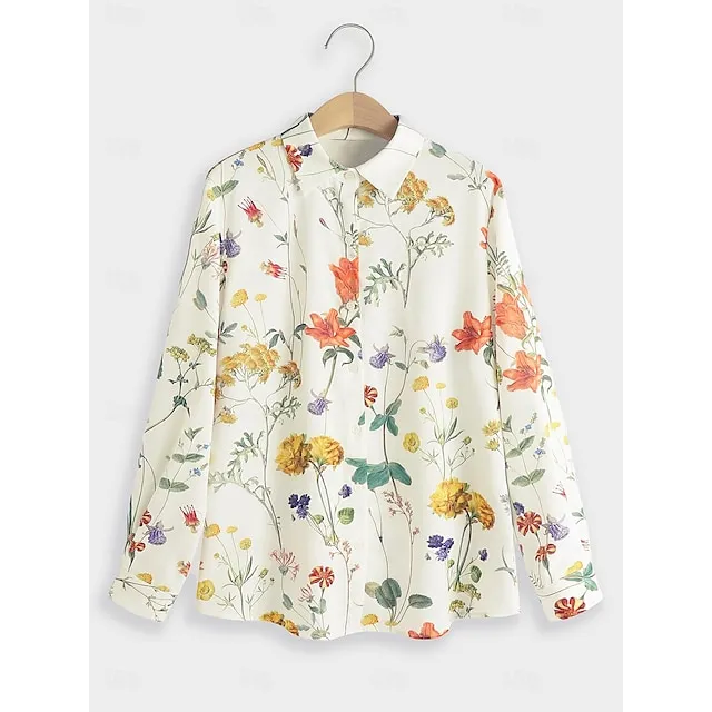 Women’s Shirt Blouse Floral Casual Holiday White Button Print Long Sleeve Fashion Streetwear Shirt Collar Regular Fit Spring & Fall