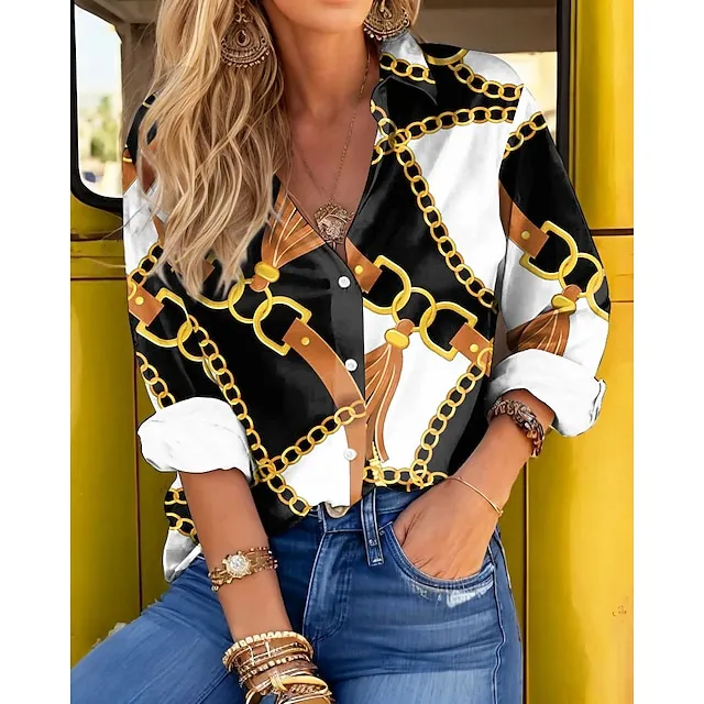 Women’s Shirt Blouse Leopard Casual Black Brown Button Print Long Sleeve Fashion Shirt Collar Regular Fit Spring & Fall