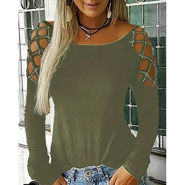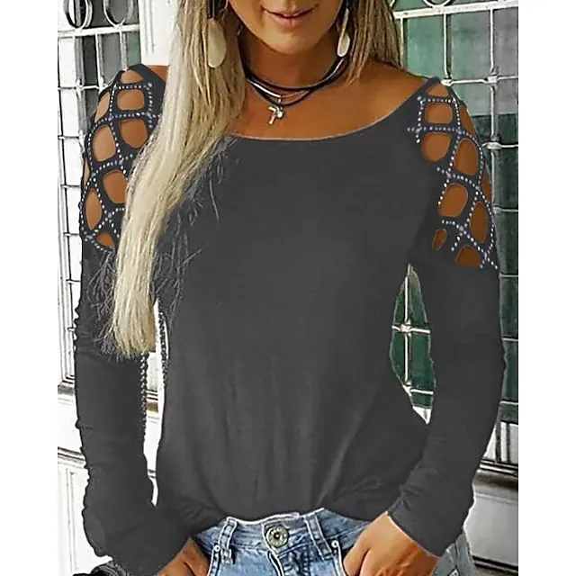 Women’s Shirt Burgundy Tee Blouse Black Wine Blue Cut Out Long Sleeve Sexy Casual Round Neck Regular Fit Fall & Winter