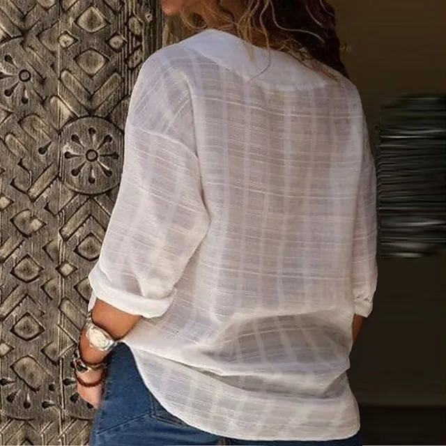 Women’s Shirt Going Out Tops Blouse Concert Tops Cotton Plain Work Daily Weekend Black White Pink Long Sleeve Streetwear Basic V Neck Regular Fit Spring Fall