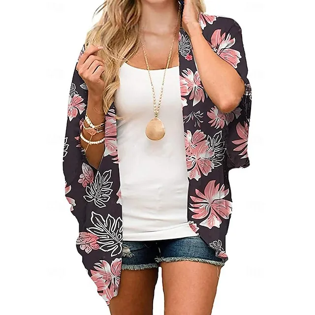 Women’s Shirt Shrugs Floral Leopard Casual Holiday Black Light Green Pink Print Long Sleeve Fashion V Neck Regular Fit Spring & Summer