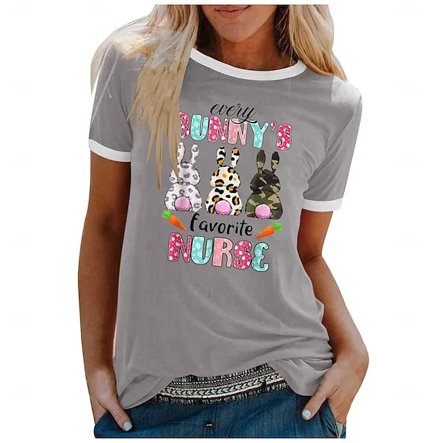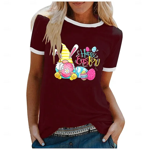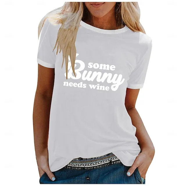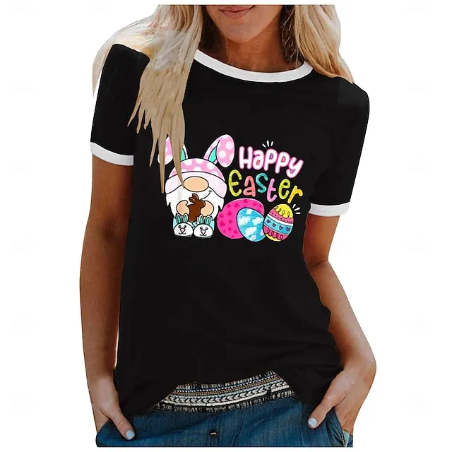 Women’s T shirt Tee Graphic Letter Weekend Easter Black White Yellow Print Short Sleeve Fashion Round Neck Regular Fit Summer