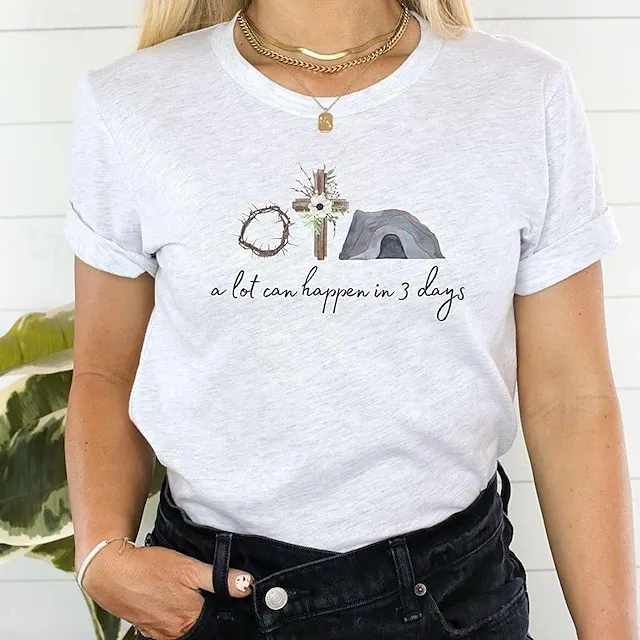 Women’s T shirt Tee Modal Graphic Letter Daily Weekend Easter White Print Short Sleeve Fashion Round Neck Regular Fit Summer