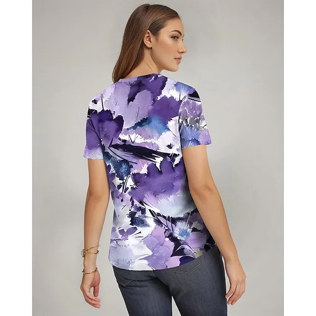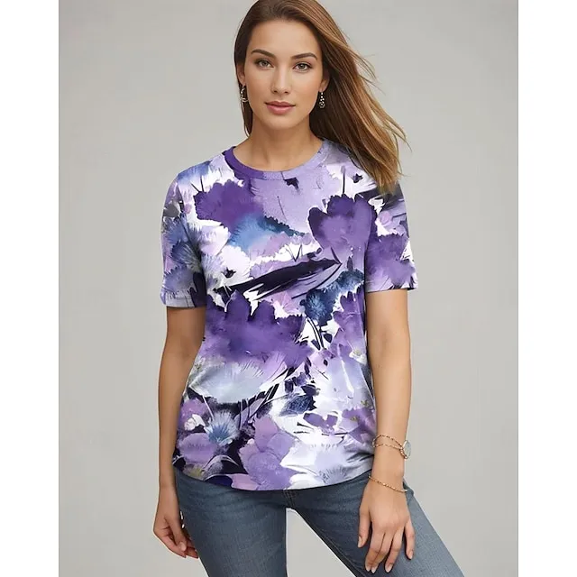 Women’s T shirt Tee Tie Dye Daily Weekend Purple Print Short Sleeve Fashion Round Neck Regular Fit Summer
